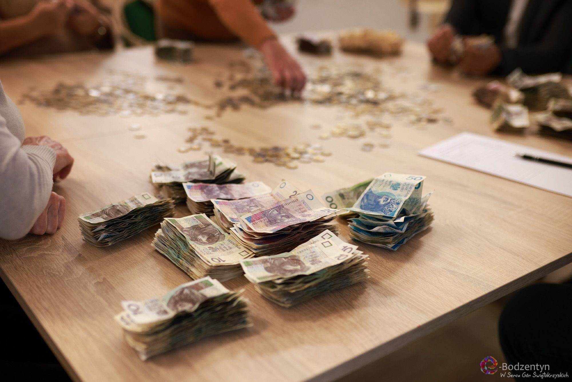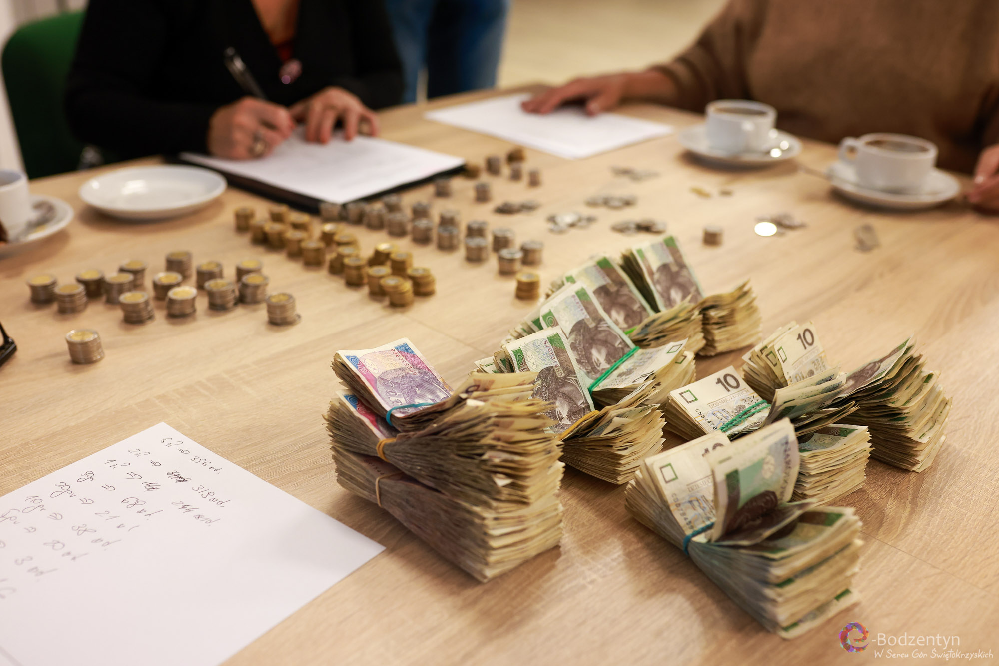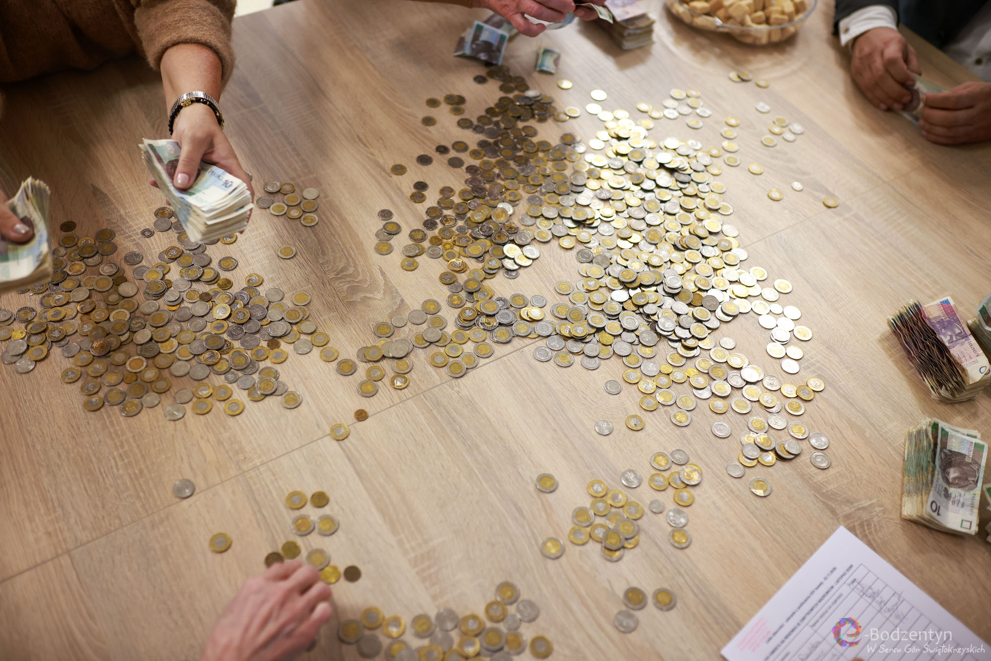 Liczenie zebranych funduszy odbyło się 3 listopada o godzinie 11:00 w siedzibie Biblioteki Publicznej i Centrum Kultury w Bodzentynie, gdzie mieści się również siedziba Towarzystwa Przyjaciół Bodzentyna.