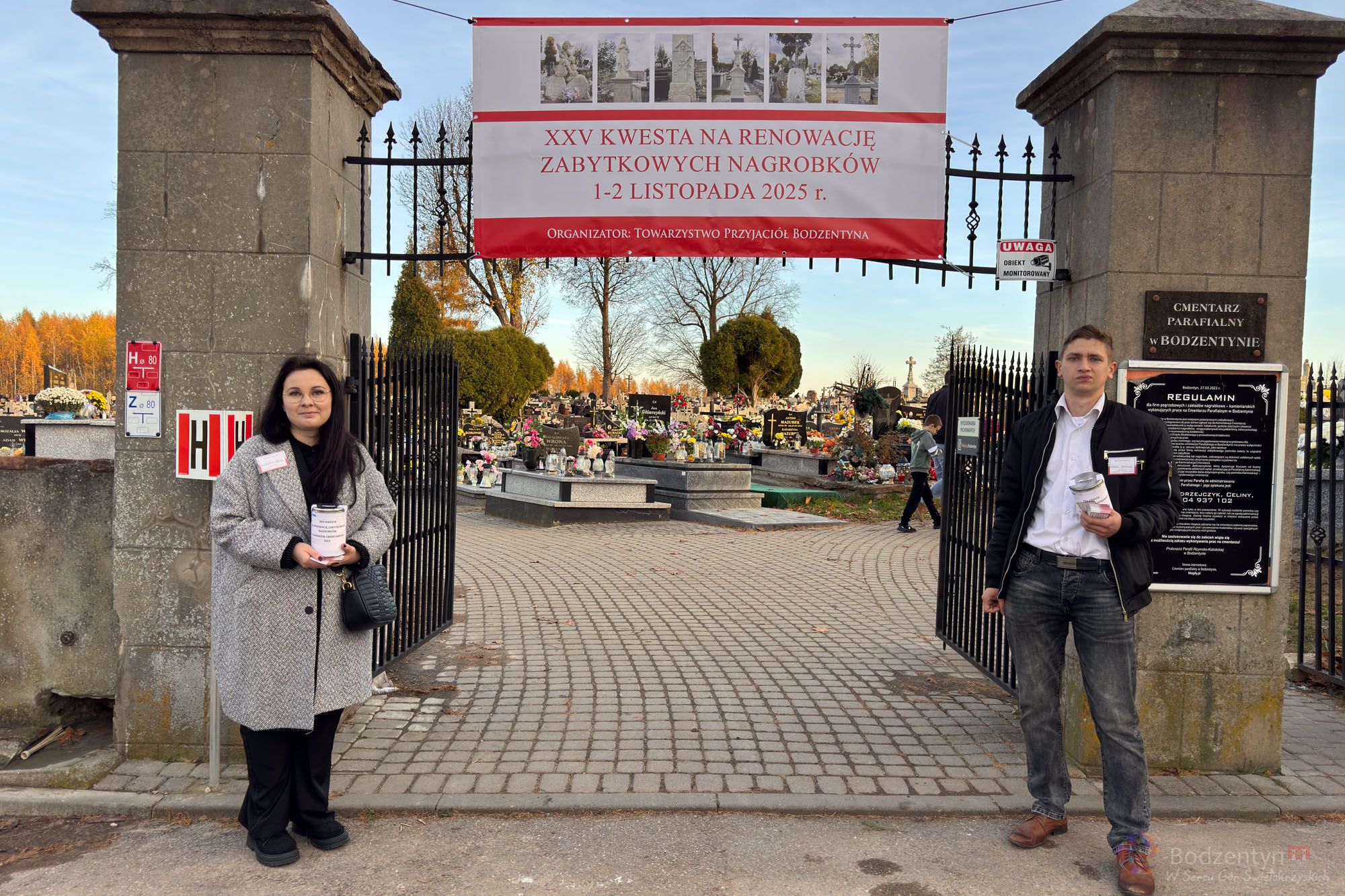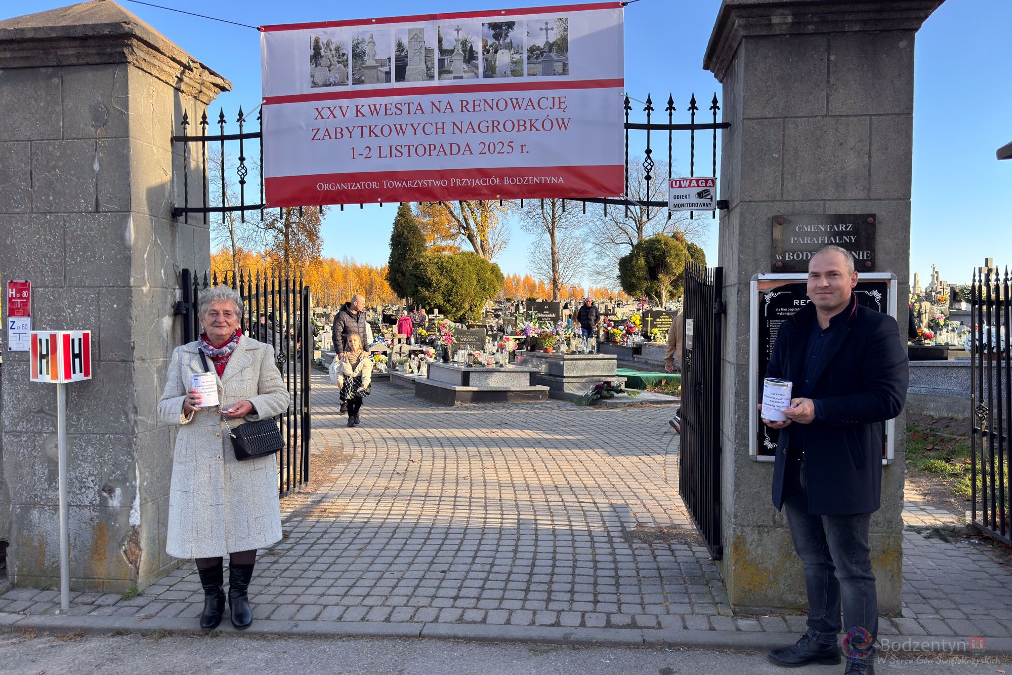 XXV Kwesta na renowację zabytkowych nagrobków w bodzentynie co roku cieszy się popularnościa i zainteresowaniem wśród osób odwiedzających bodzentyńską nekropolię. Dwudniowa kwesta rozpoczęła się w tym roku 1 listopada. Przy obu bramach wejściowych na cmentarz stanęło w sumie ponad 65 wolontariuszy z puszkami, które zapełniały się z każdą godziną. Dzięki zaangażowaniu wolontariuszy i wielkiemu wsparcoiu darczyńców w tym roku uzbieano dokładnie 16 605, 27 zł i 2 euro. Organizatorem wdyarzenia było Towarzystwo Przyjaciół Bodzentyna.