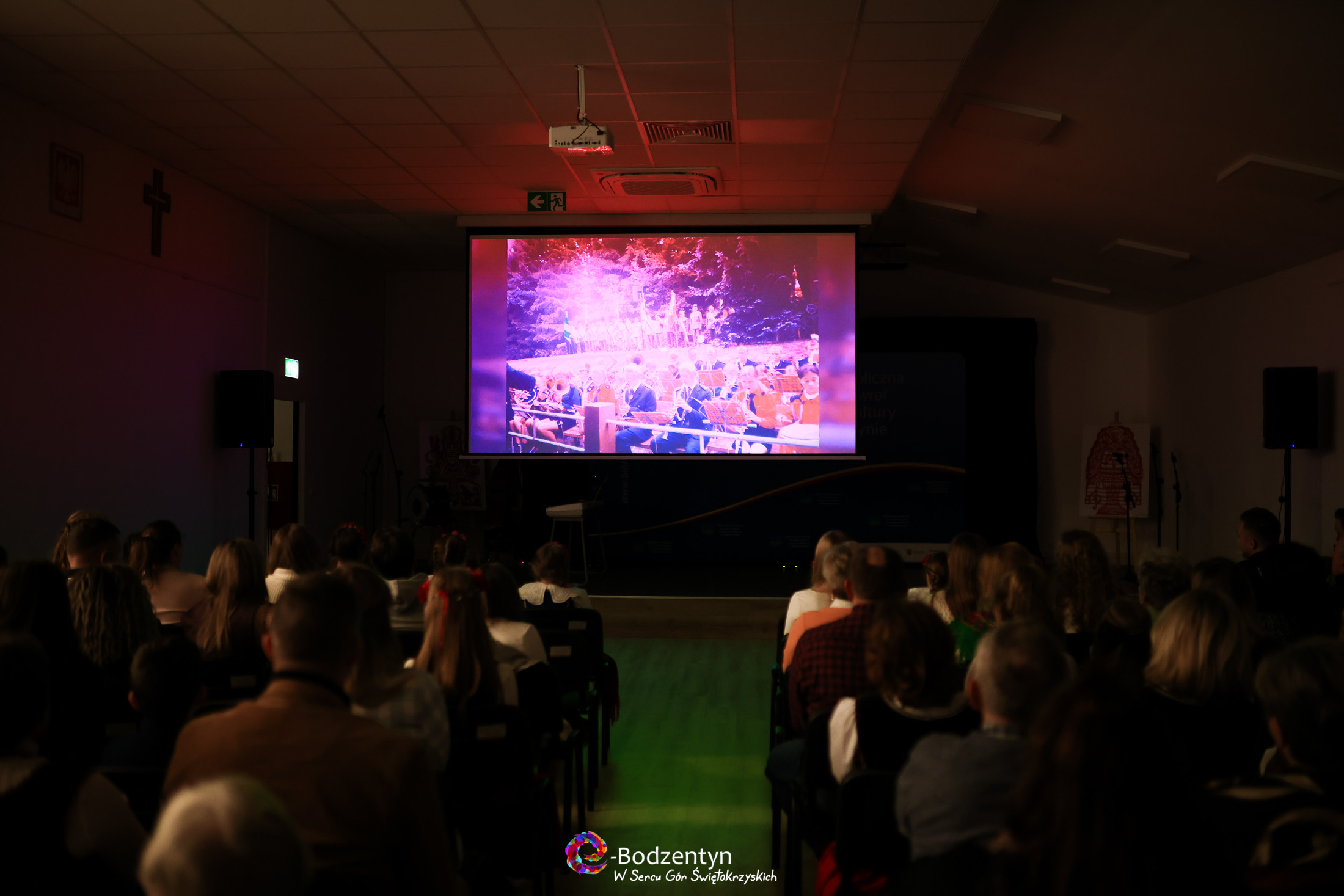 Uroczystość rozpoczęła się punktualnie o godz. 15:00 wyjątkową niespodzianką - 14–minutowym filmem przygotowanym z okazji 150-lecia Młodzieżowej Orkiestry Dętej OSP Bodzentyn. Autorem produkcji była Biblioteka i Centrum Kultury we współpracy z portalem e-Bodzentyn.pl. Wypełniona po brzegi sala w skupieniu obejrzała materiał, który wprowadził widzów i artystów w uroczysty, muzyczny nastrój.